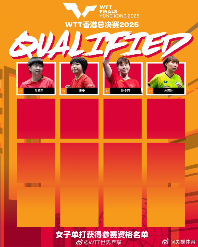 2025WTT香港总决赛公布首批获得参赛资格名单,国乒参赛名单如下:
