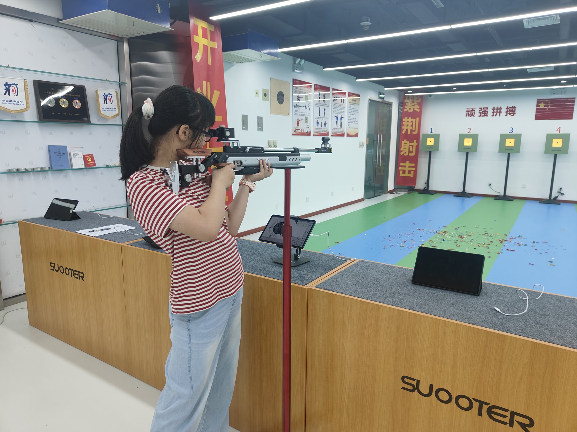 紫荆射击使用速得尔科技(北京)有限公司研发生产的激光射击模拟系统,该公司作为国内射击装备领导品牌,长期为国家队提供科技保障,专业性毋庸置疑。速得尔激光枪的设计理念是“所练即所得”,充分复刻了气手枪和气步枪的规则、原理、手感,为练习者养成专业的使用习惯和肌肉记忆。赵俊民直言,速得尔激光枪几乎完全模拟了专业枪支的使用感受,“转战实弹射击后,大概两三周就可以达到此前使用激光枪打出的环值。”
