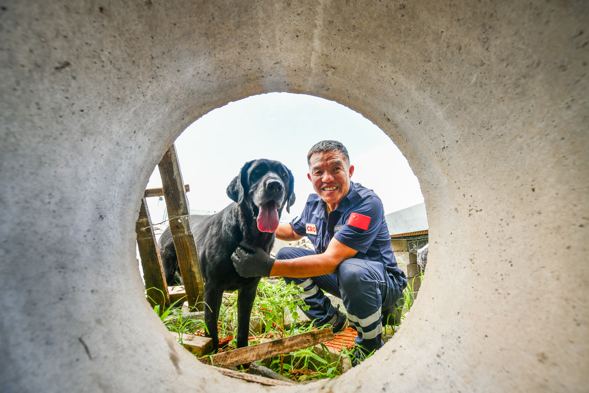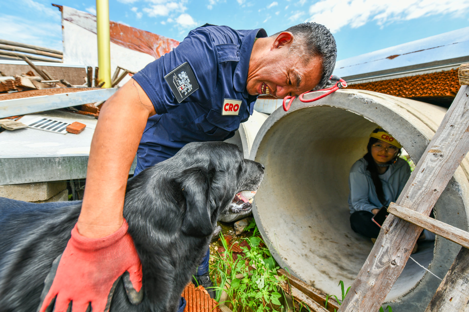 “Search!”随着一声口令,一条黑色的拉布拉多飞快地冲进废墟,用敏锐的鼻子嗅探,搜索着它的目标。