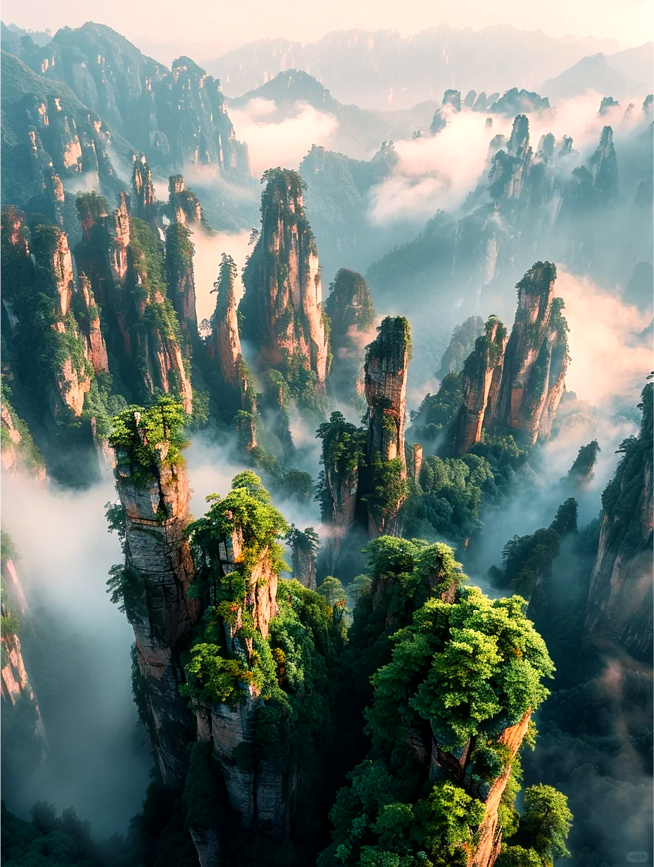 三千座石峰拔地而起,八百条溪流蜿蜒曲折,来张家界旅游观光的人,被奇特的砂岩峰林地貌和壮丽的喀斯特景观所倾倒,仿佛置身于奇山仙境之中,探寻群山漂浮、星罗棋布的变幻莫测世界。参观云雾缭绕、峰峦叠嶂、气势磅礴的迷魂台,及天下第一桥等空中美景。乘百龙电梯下山,漫步大峡谷的金鞭溪,在峰峦幽谷间享受鸟语花香,溪水明净、流水潺潺。