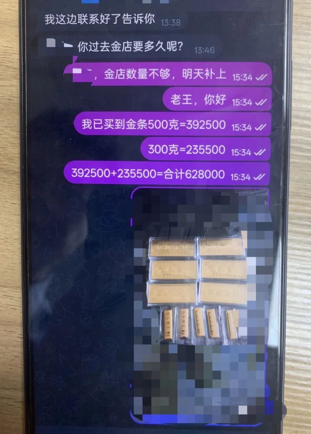 见“时机成熟”,“富商”男子又提出需要邮寄黄金进行“账号充值”才能继续投资,随后,王女士来到金店分两次购买了800克黄金。