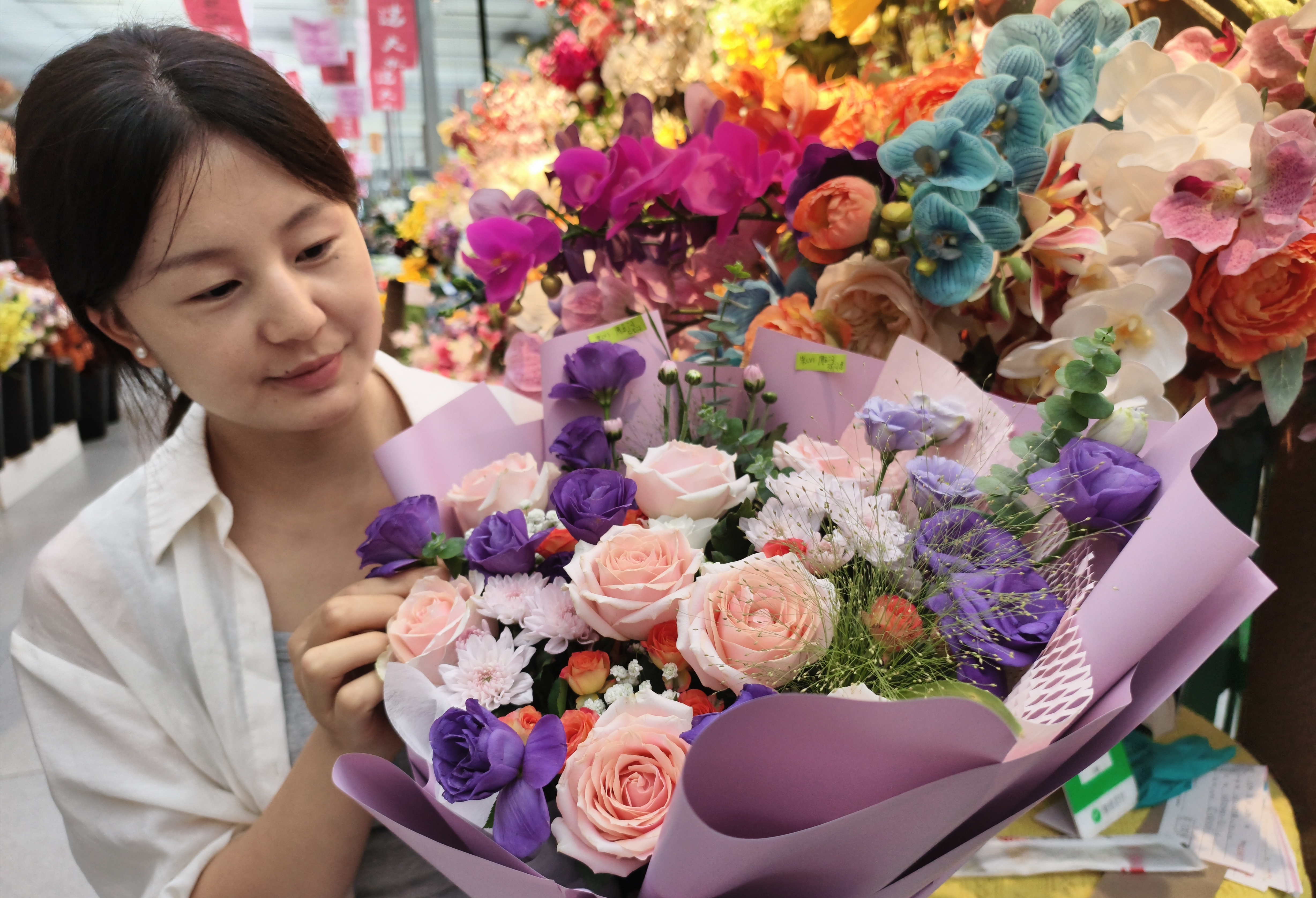 七夕将至,京城花卉市场迎来购销高峰,花商们开启“幸福的忙碌时刻”。在北京花卉交易中心,经销商仅玫瑰储备量就达五六百万枝,各色鲜切花整齐码放,应对节日需求。