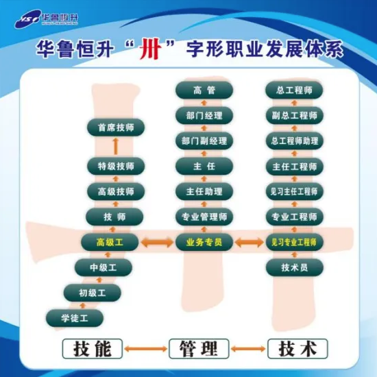 华鲁恒升这个“卅”字,正是湖北总工会“卅”字形职业发展体系的缩影。“技能-技术-管理”三条事业路径既能纵向发展又能横向连接;既可以在任一赛道向上攀登,又能横向贯通跨领域成长成才。