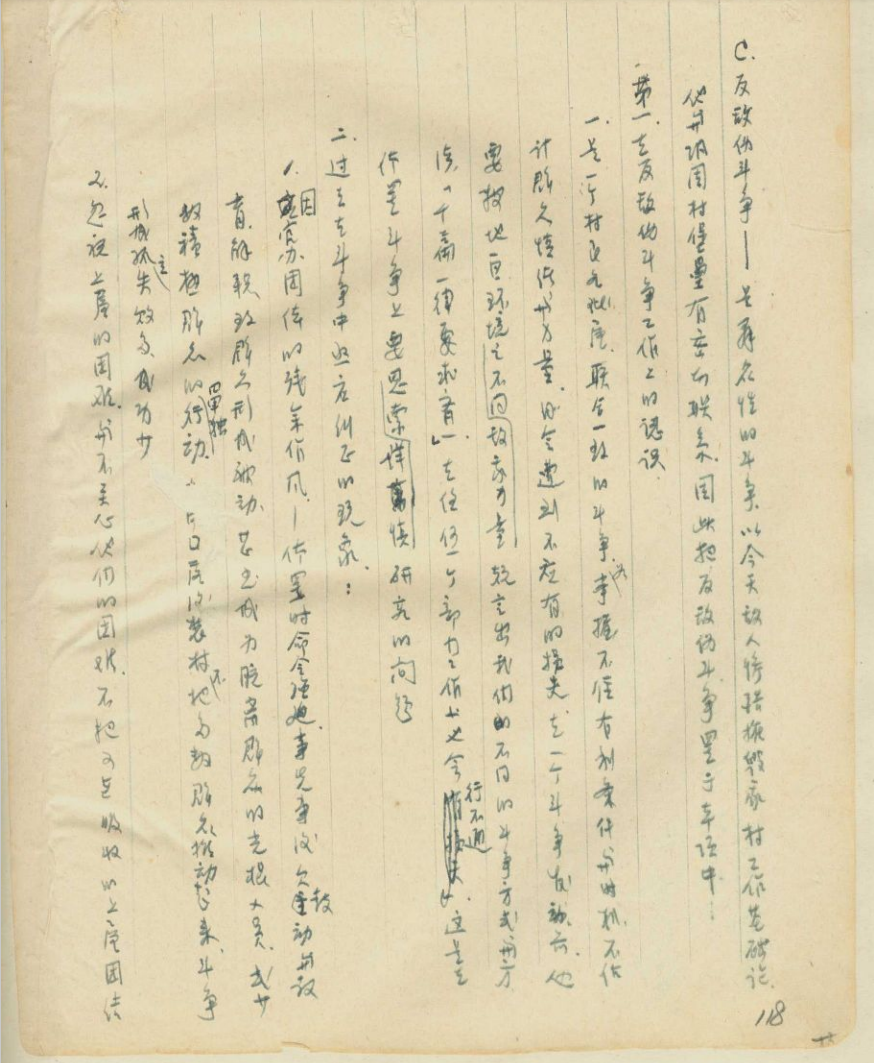 在“反敌伪斗争”那篇里写道:“这是群众性的斗争,与巩固村堡垒有着密切的联系”;