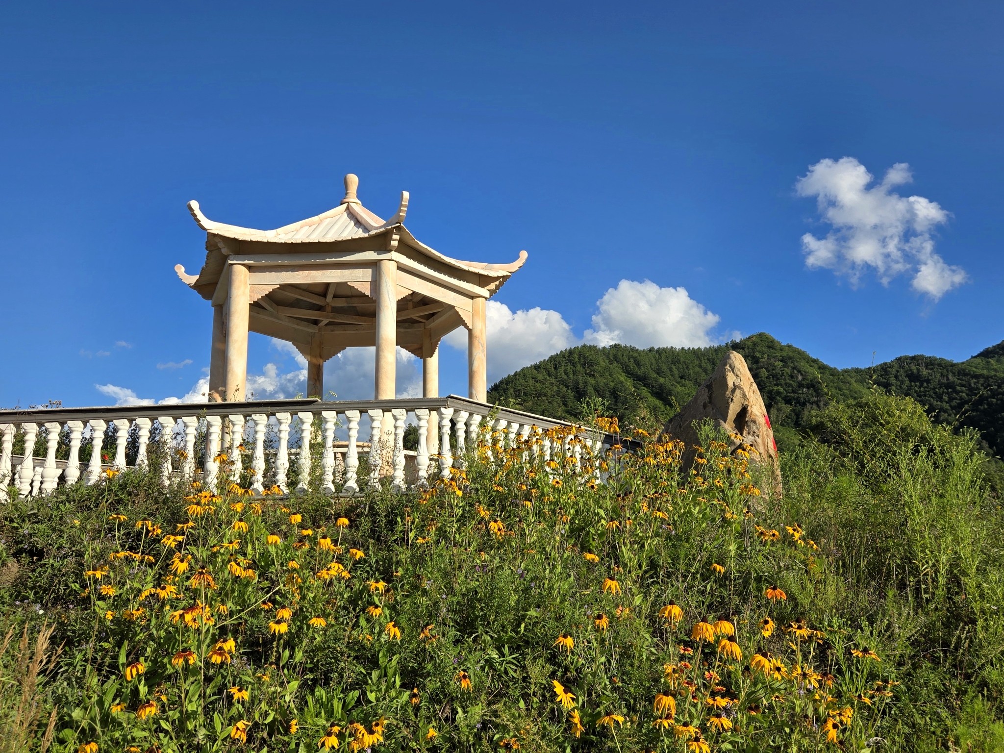 8月30日,北京怀柔区长哨营乡、河北丰宁县,天高地阔,牛羊满坡,葵花朵朵。