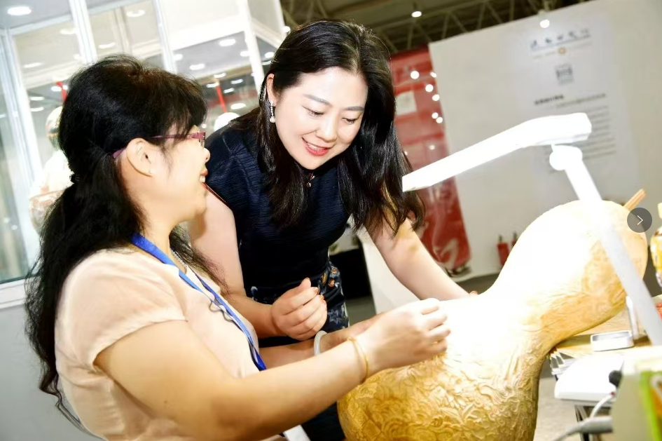 多年来,殷丽莉一直致力于非遗推广,线上与知名主播合作开展直播,线下走入商场、景区、产业园、博物馆,推动非遗与教育、文创、文旅深度融合,助力乡村振兴。同时,通过政协提案、学术指导等方式,促进非遗保护和传承。