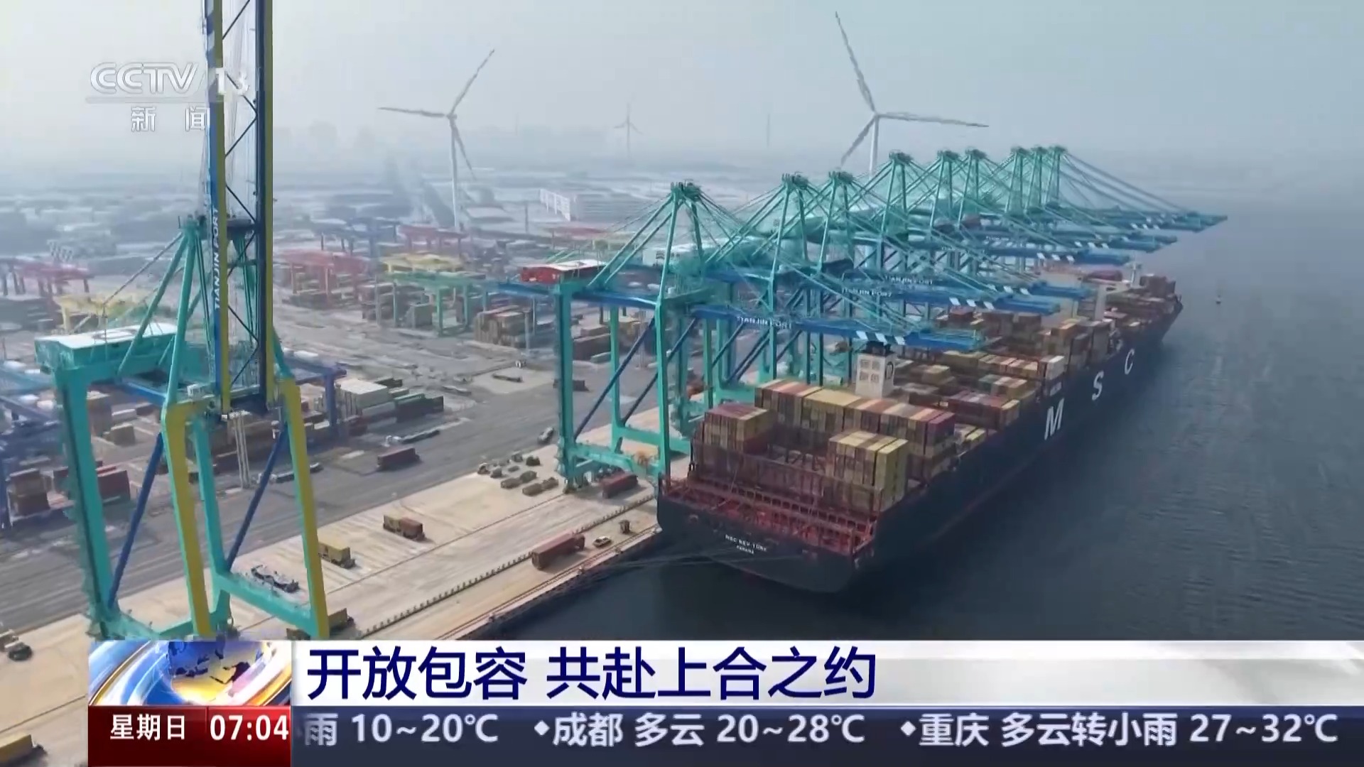 在这里,智利车厘子、南美白虾新鲜到港,中国制造的新能源汽车装船启程。作为“一带一路”海陆交汇点与新亚欧大陆桥经济走廊关键节点,天津港的繁忙背后,是中国与世界不断拉近的距离。