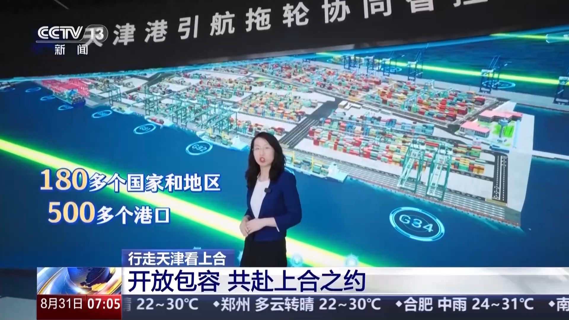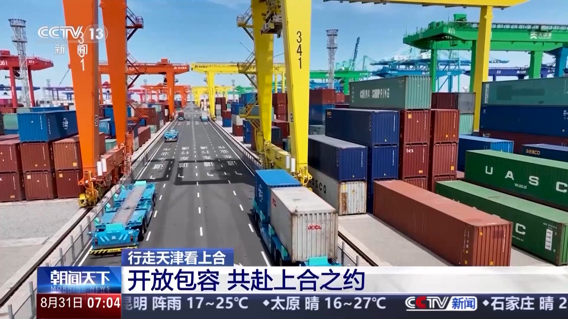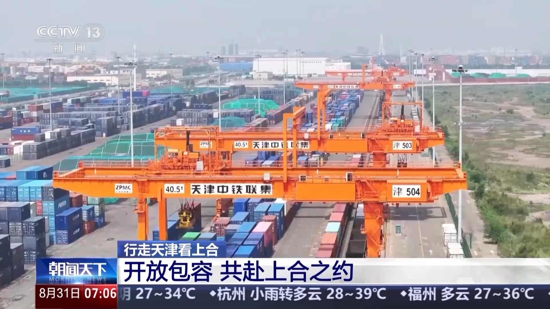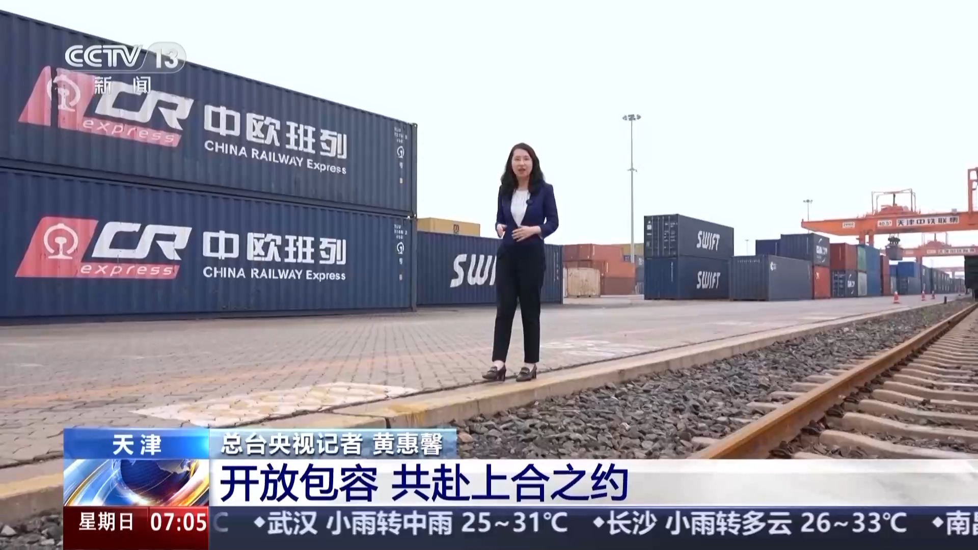 总台央视记者 黄惠馨:从天津港出发的中欧班列,最快20天就可以抵达欧洲。天津港还开通了直达乌兹别克斯坦塔什干的海铁联运中亚班列,进一步联通中国与上合组织国家间的国际物流通道。