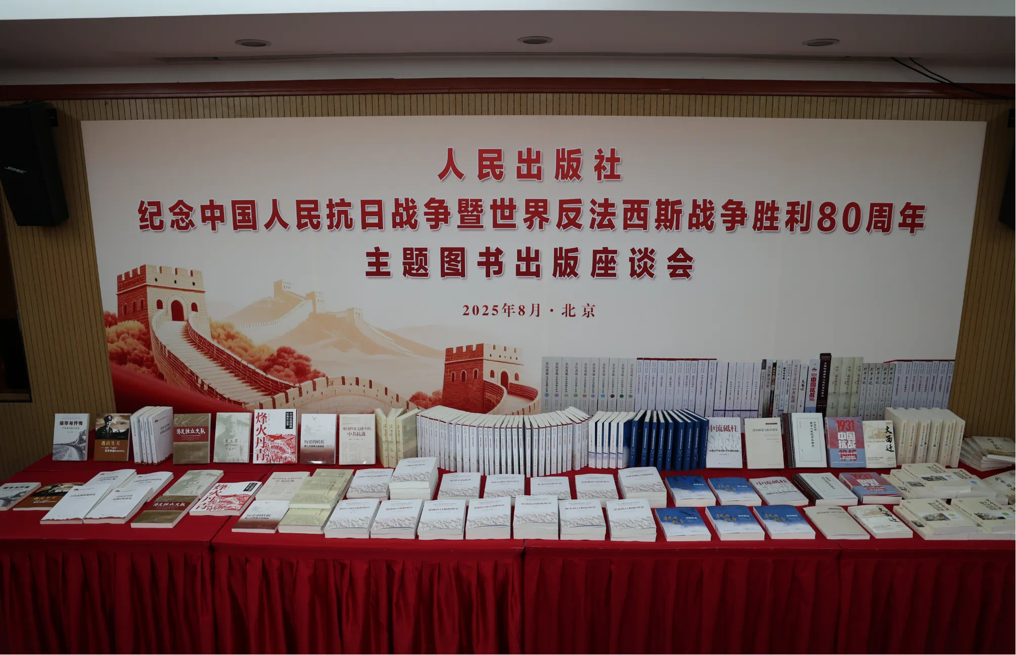 8月30日,人民出版社组织召开纪念中国人民抗日战争暨世界反法西斯战争胜利80周年主题图书出版座谈会,集中展示了一批抗战主题精品图书,着力展现中国共产党领导全民族抗战的中流砥柱作用,着力弘扬伟大抗战精神,着力彰显中国人民抗战胜利的伟大贡献和历史地位,着力讲好中国人民同世界各国人民共抗法西斯的故事。