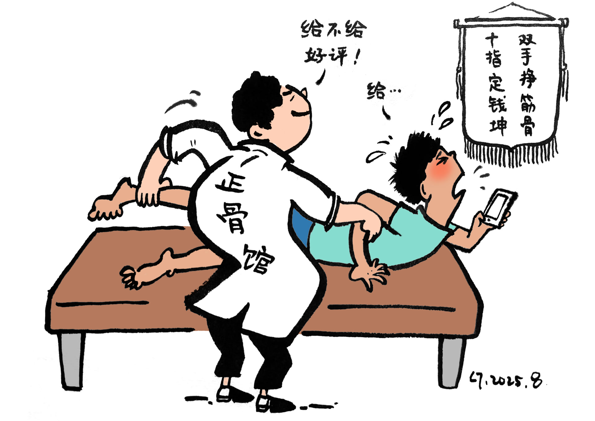 当下,“中医正骨”成为养生领域高频词,“咔咔几下解决疼痛”的正骨视频让很多人跃跃欲试,美容院、养生馆趁机入局。正骨是中医传统疗法,绝非掰出“咔咔响”那么简单。大量无医疗资质的“正骨师”上岗,滥施手法,暗含严重风险。对野蛮生长的正骨馆,也需“正正骨”。