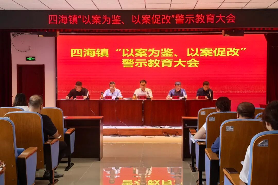 四海镇召开“以案为鉴、以案促改”警示教育大会。会议强调,一要强化理论武装,深入学习习近平总书记关于党的自我革命的重要思想、关于党的作风建设的重要论述。二要加强党的领导,压紧压实全面从严治党主体责任。三要聚焦群众所盼,以集中整治为抓手,切实解决群众烦心事、愁心事。四要强化规矩意识,守住底线、树牢红线,时刻绷紧纪律规矩之弦,以优良党风政风引领社风民风,全面营造良好干事创业氛围。