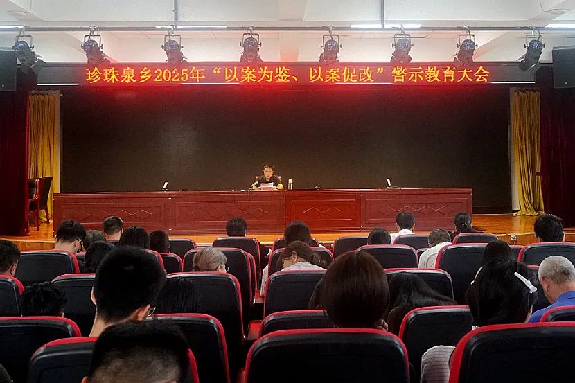 珍珠泉乡召开“以案为鉴,以案促改”警示教育大会。会上传达市、区警示教育大会精神,深刻剖析违纪违法典型案例,集中观看警示教育片。会议强调,一要树立自我革命的信心,强思想固根基。二要树牢勤政为民的初心,解民困暖民心。三要涵养精益求精的匠心,能担当善作为。四要增强作风建设的恒心,纠“四风”树新风。五要坚定管党治党的决心,压责任聚合力。