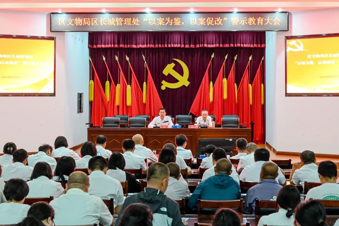 区文物局区长城管理处召开“以案为鉴、以案促改”警示教育大会。会议传达市、区警示教育大会精神,集中观看警示教育片。会议强调,一要以典型案例为镜鉴,深刻反思、举一反三,扎实开展自查自纠。二要进一步健全作风建设常态化长效化机制,始终严守中央八项规定精神。三要以此次警示教育为契机,切实做好以案促改、以案促治,推动全面从严治党向纵深发展。