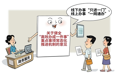 国务院办公厅近日印发《关于健全“高效办成一件事”重点事项常态化推进机制的意见》,明确进一步发挥“高效办成一件事”牵引作用。朱慧卿作(新华社发)