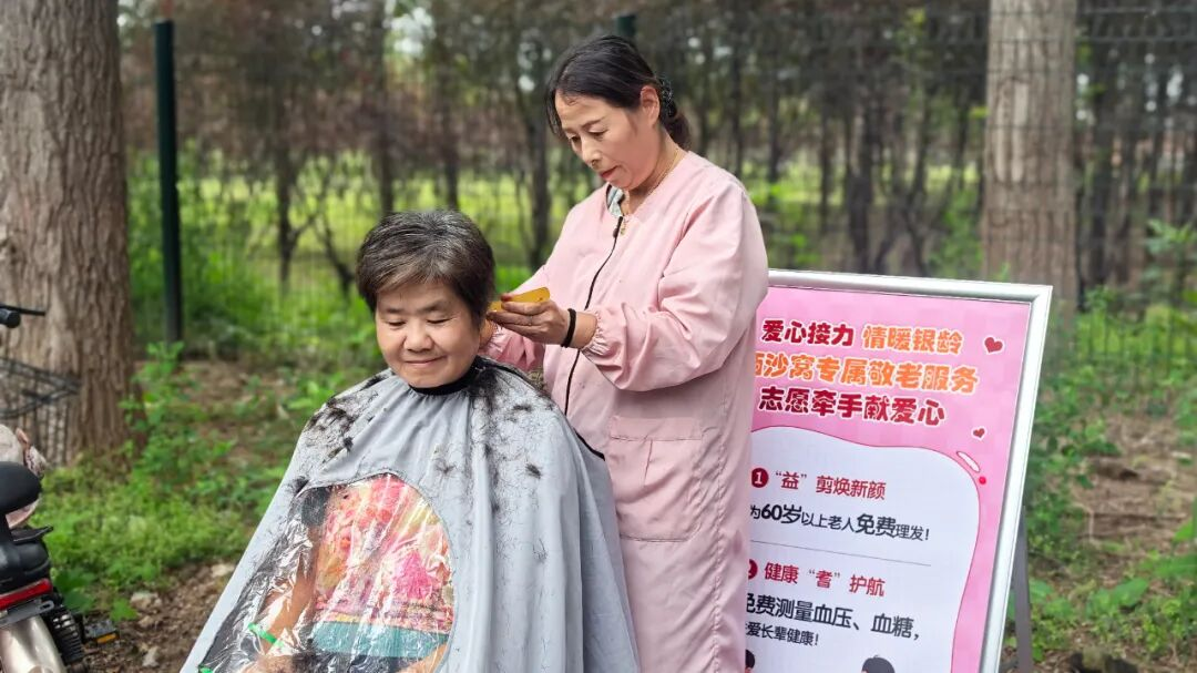 汉服体验、手工串珠、奶油DIY、五子棋竞赛、义务理发……西沙窝村“童手牵耆·爱满市集”活动现场人头攒动,笑语不断,好不热闹。