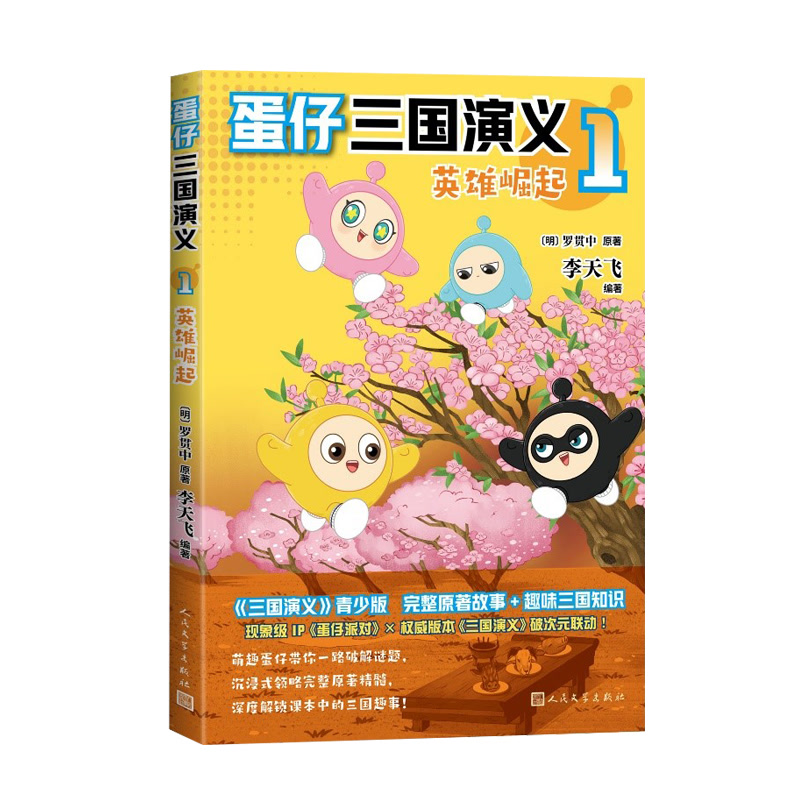 近日,李天飞《蛋仔三国演义1英雄崛起》由人民文学出版社出版。该书为人民文学出版社权威版本《三国演义》和现象级手游IP《蛋仔派对》的梦幻联动。在《蛋仔三国演义》中,六只萌趣蛋仔从盲盒机穿越到东汉末年的三国,穿上汉朝服饰,化身三国英雄,开启了一场“穿书”探险之旅。《蛋仔三国演义1 英雄崛起》是本系列的第一本,包含了原著从“宴桃园豪杰三结义,斩黄巾英雄立首功”到“斩蔡阳兄弟释疑,会古城主臣聚义”前二十八回的内容。文本严格遵照原著,由《三国演义》研究专家权威审订,完整呈现故事的同时,增加古代天文地理、生活起居、车马兵器等丰富知识,帮助孩子读懂权谋故事,理解历史人物,了解传统文化。