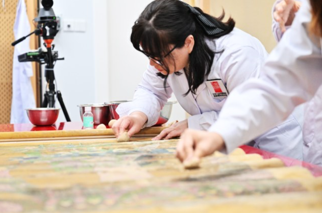 这幅画作即将展出,要尽最大努力让它重现刚完成时的风采。范胜利从桌子底下取出一只袋子,将里面的灰色面粉倒入两个不锈钢盆中,加水、和面,再将揉好的面团分成汤圆大小,接着与同事手持面团,小心翼翼地粘走画作表面尘土。“这不是什么高科技材料,就是盛产于内蒙古、山西等地的莜面,莜面是很健康的主食,但是在文物修复师眼中,莜面更是清理书画文物表面的绝佳材料。”范胜利说,用莜面清理文物表面的灰尘是传统手艺,相较于其他面团,莜面黏性小且弹性好,不易损伤画面;和面时加入适量甘油让面团保湿,可以更好地粘走灰尘。