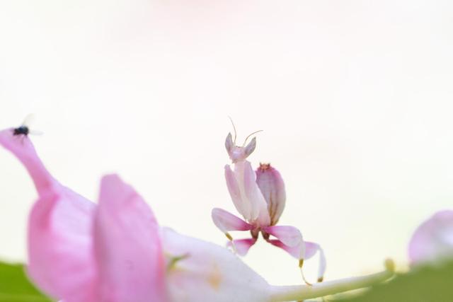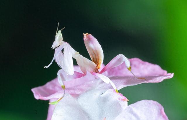 兰花螳螂学名冕花螳螂,是昆虫界著名的“拟态大师”。兰花螳螂幼虫阶段背部与腿部会演化出类似兰花的粉红色彩,停驻花瓣间左右轻晃时,与绽放的兰花几乎难辨真伪,独特的进化特征使其成为云南生物多样性的标志性物种之一,是云南昆虫的一张名片。