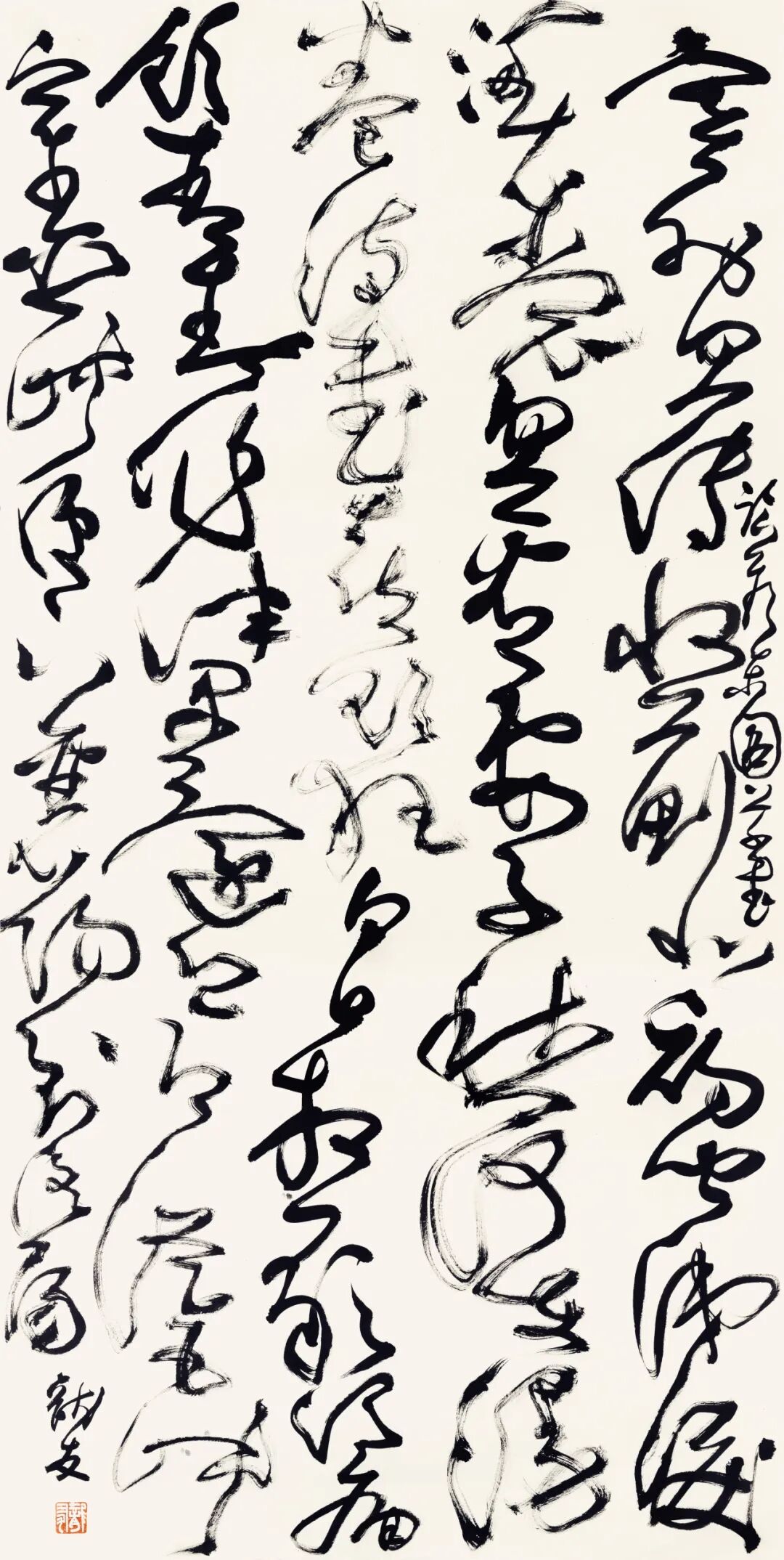 作品诗文为52岁的杜甫在唐代宗广德元年(763年)春“安史之乱”平定之际所写的“生平第一快诗”。时值唐军收复蓟北,杜甫在四川听闻捷报,欣喜若狂,八年的平复之战和颠沛流离的生活,让这位久经风霜的诗人情感勃发。本作以草书写成,节奏强烈,诗人内心激昂澎湃的喜悦之情与纪念抗战胜利的振奋氛围相得益彰。