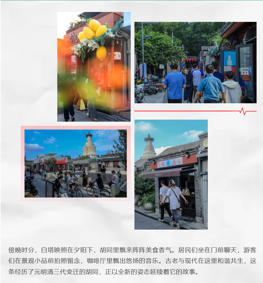 青砖灰瓦、白塔耸立,老北京的记忆在这里流淌。位于西城区白塔寺历史文化街区的宫门口东西岔胡同,历经岁月沧桑,如今焕发新颜。