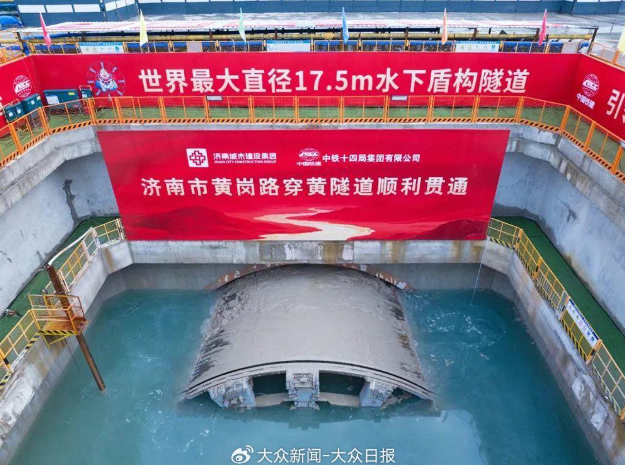 8月17日,随着开挖直径17.5米的“山河号”盾构机刀盘破洞而出,由济南城市建设集团投资建设,中铁十四局集团承建的济南黄岗路黄河隧道盾构段掘进完成,世界最大直径水下盾构隧道顺利贯通,标志着中国水下隧道建设领域迎来里程碑式突破。隧道建成后,将进一步促进济南拥河发展,对推动黄河南北两岸的经济交流与合作、加快起步区建设具有重要意义。