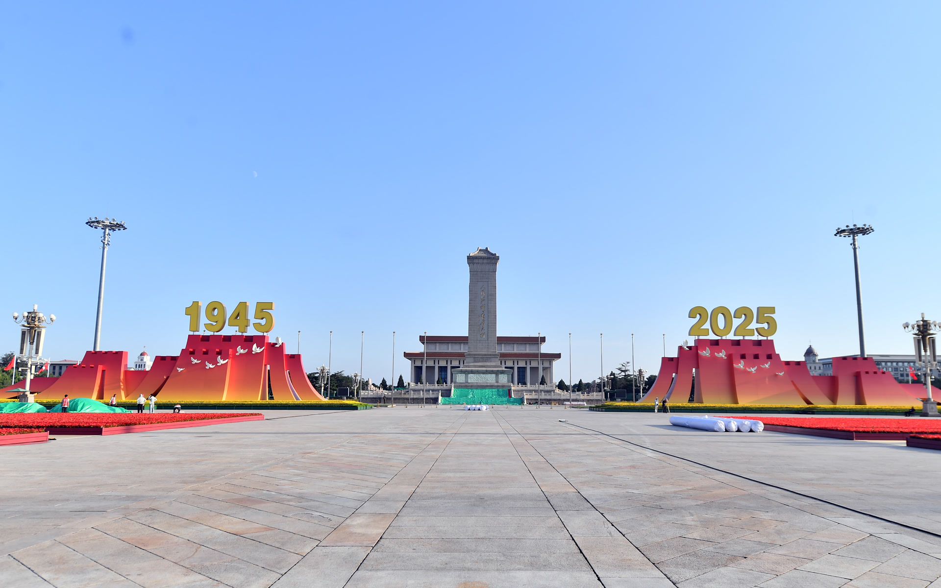 9月3日,纪念中国人民抗日战争暨世界反法西斯战争胜利80周年大会隆重举行,天安门广场的整体造型给人们留下深刻印象。
