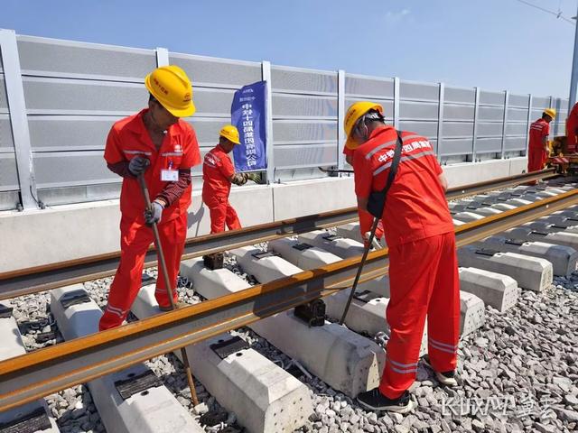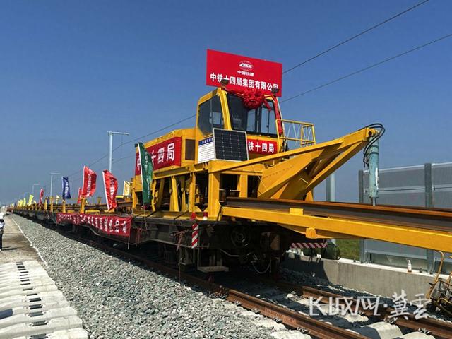 实现双线前后同时铺设,单线日铺轨道可达6公里。长城网·冀云客户端记者 周亚彬 摄
