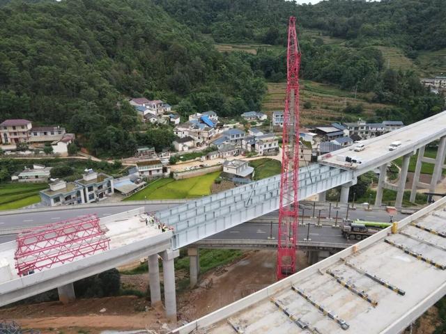 近日,随着最后一榀主梁精准落位,天保口岸至麻栗坡高速公路麻栗坡互通全部梁板架设完毕。此次架设的钢混组合梁位于文山壮族苗族自治州麻栗坡县麻栗镇南峰村的麻栗坡互通,为一跨55米简支梁,由4榀主梁组成,总重超400吨,具有跨度大、荷载重、精度要求高的特点。