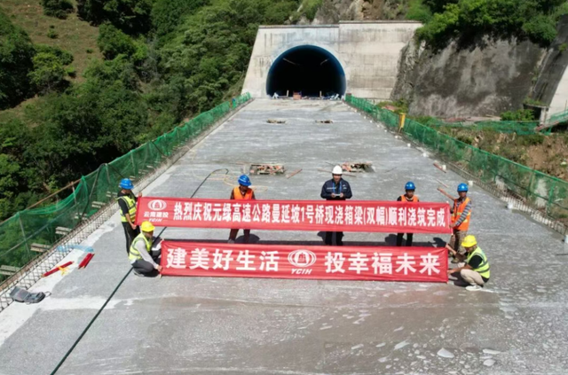 8月27日,红河哈尼族彝族自治州元阳至绿春高速公路曼延坡1号桥双幅现浇箱梁顺利浇筑完成。8月28日,太平寨1号隧道左幅顺利贯通。