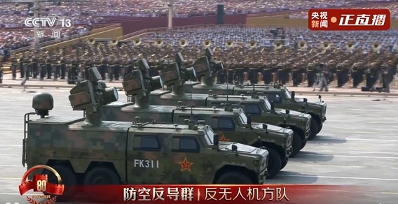 反无人机方队3日上午通过天安门广场,接受祖国和人民检阅。