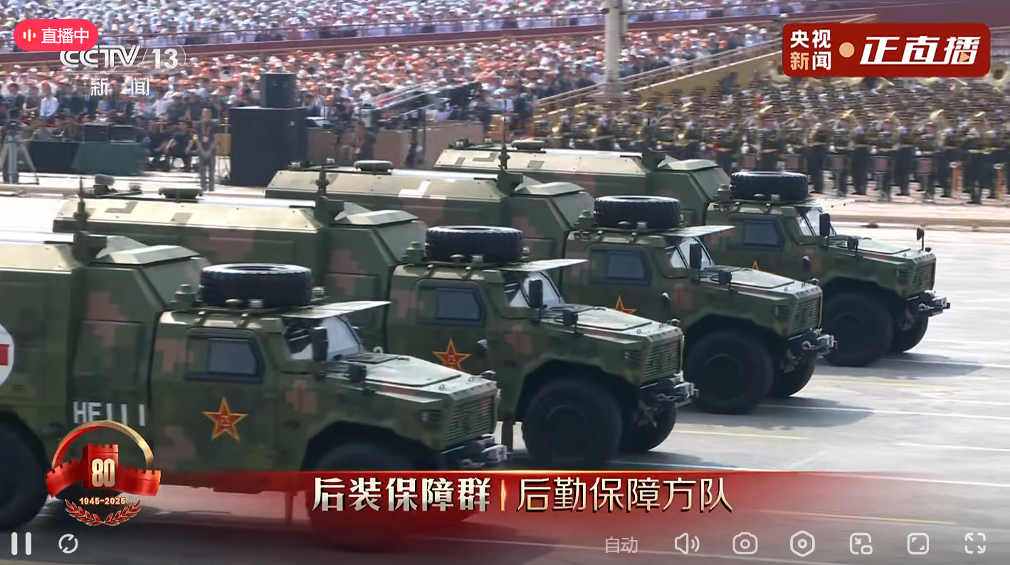 受阅装备为野战急救车、野战帐篷医院系统、运加油车、基地化热食快餐保障系统,是联勤保障部队新一代保障装备,兼具机械化、信息化、智能化等特点,功能齐备、方便快捷,能很好地满足现代战争条件下的战略战役支援保障需求,丰富完善了我军现代后勤保障体系,大幅提升联合保障能力。