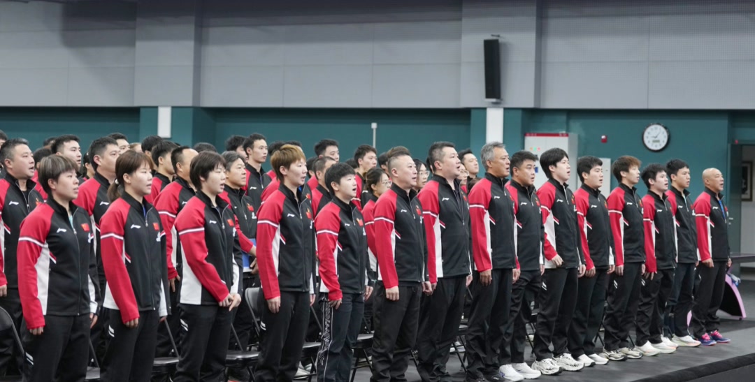9月3日上午,纪念中国人民抗日战争暨世界反法西斯战争胜利80周年大会在北京天安门广场隆重举行。中国乒乓球协会副主席秦志戬、秘书长何潇带领国乒全体运动员、教练员和中国乒协成员,在国家体育总局训练馆集体观看了大会直播。“胸前有国旗,心中也要有国旗,每个人都要强化为国而战的荣誉感和使命感,把这种力量带到每天的训练中去。”秦志戬说。