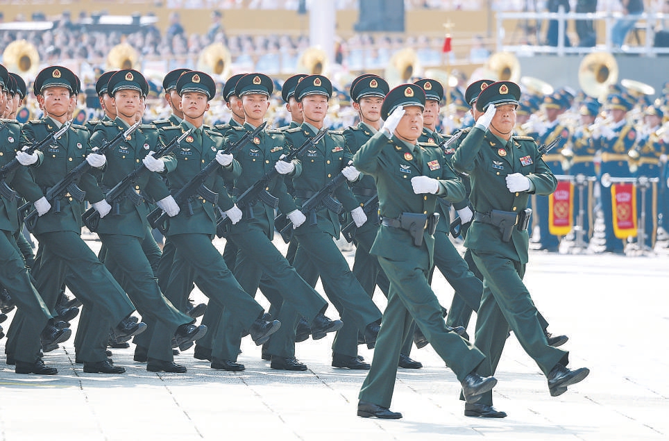 陆军方队受阅队员涵盖军官、军士、义务兵群体,99%来自基层一线。 新华社发