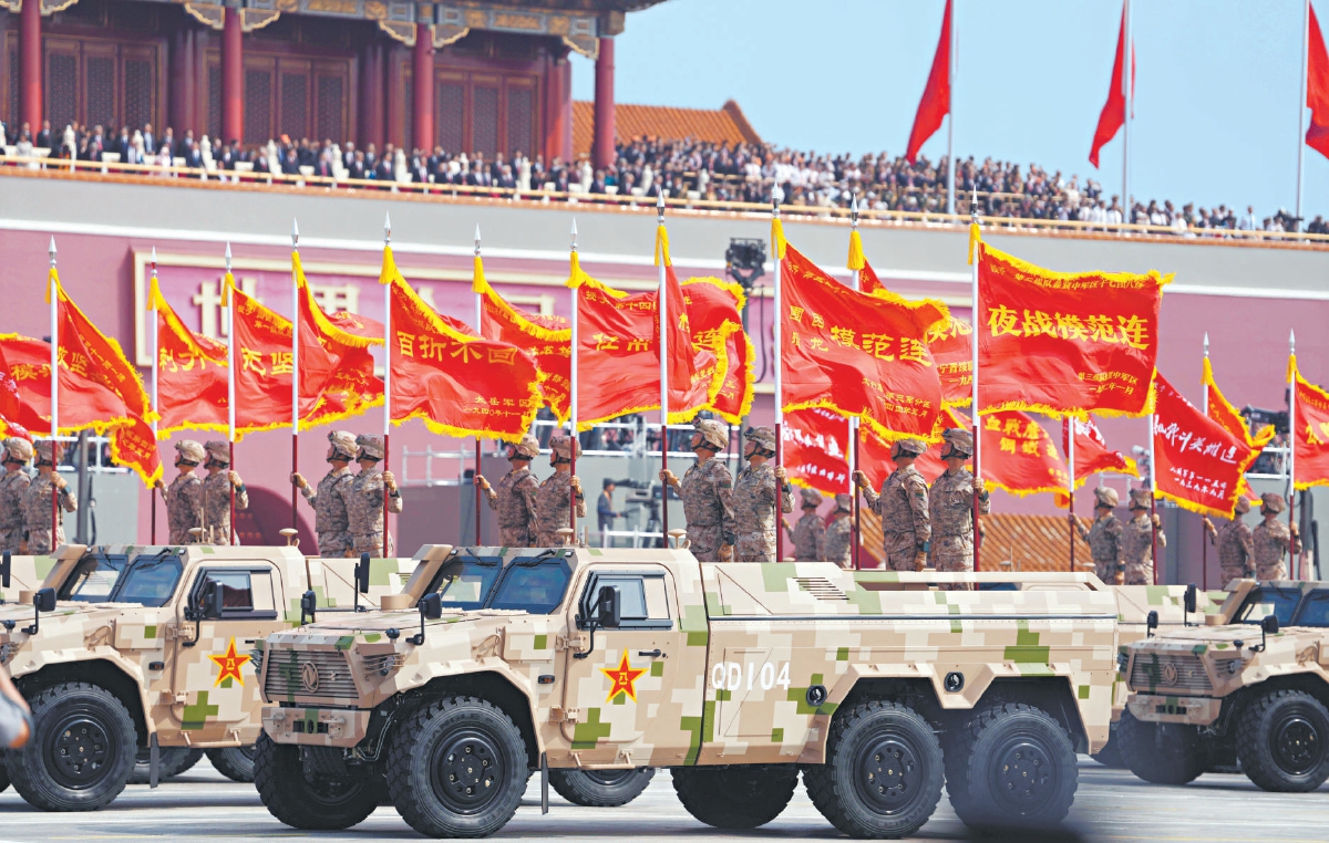 80面抗战英模部队荣誉旗帜组成的战旗方队,承载着历史荣光。 本报记者 和冠欣摄