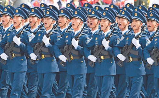 空军方队受阅队员全部参加过高空跳伞。 新华社发