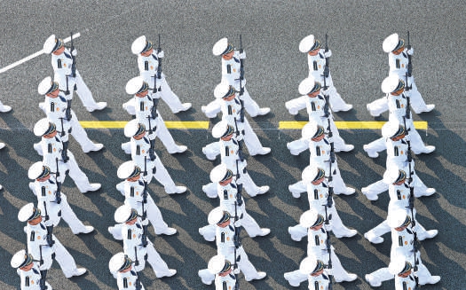 海军方队受阅队员在这次阅兵中平均年龄最小。新华社发