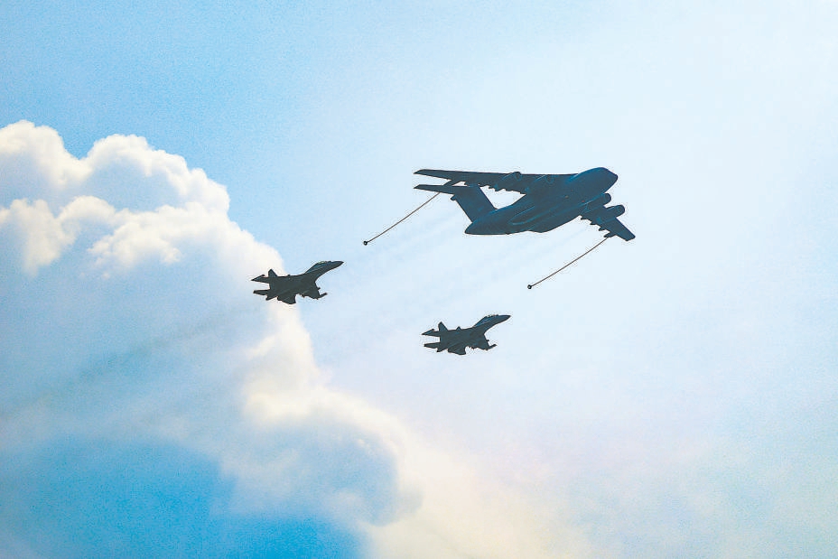 参加阅兵的加受油机梯队。此次受阅的预警侦察、远程打击、制空作战、战略投送、支援保障等机型,成体系展示我军快速提升的空中作战能力。本报记者 邓伟摄
