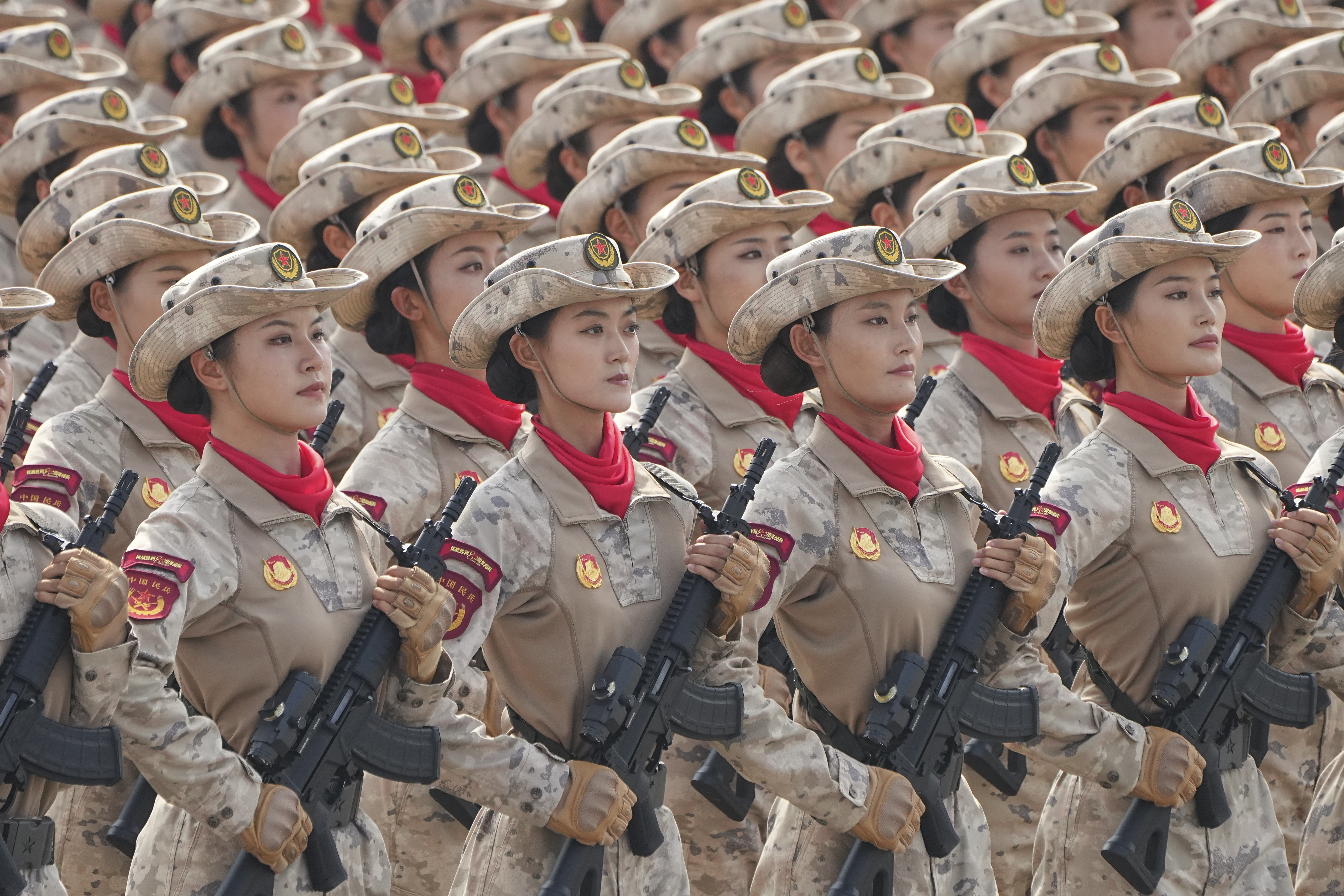 民兵方队全部由女民兵组成。这是民兵首次亮相以纪念抗战胜利为主题的阅兵活动。