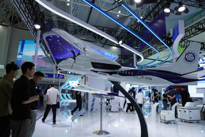 8月29日,在宁夏银川举办的第七届中阿博览会上,观众在观看智慧气象人工增雨机。(赵宇思 摄)