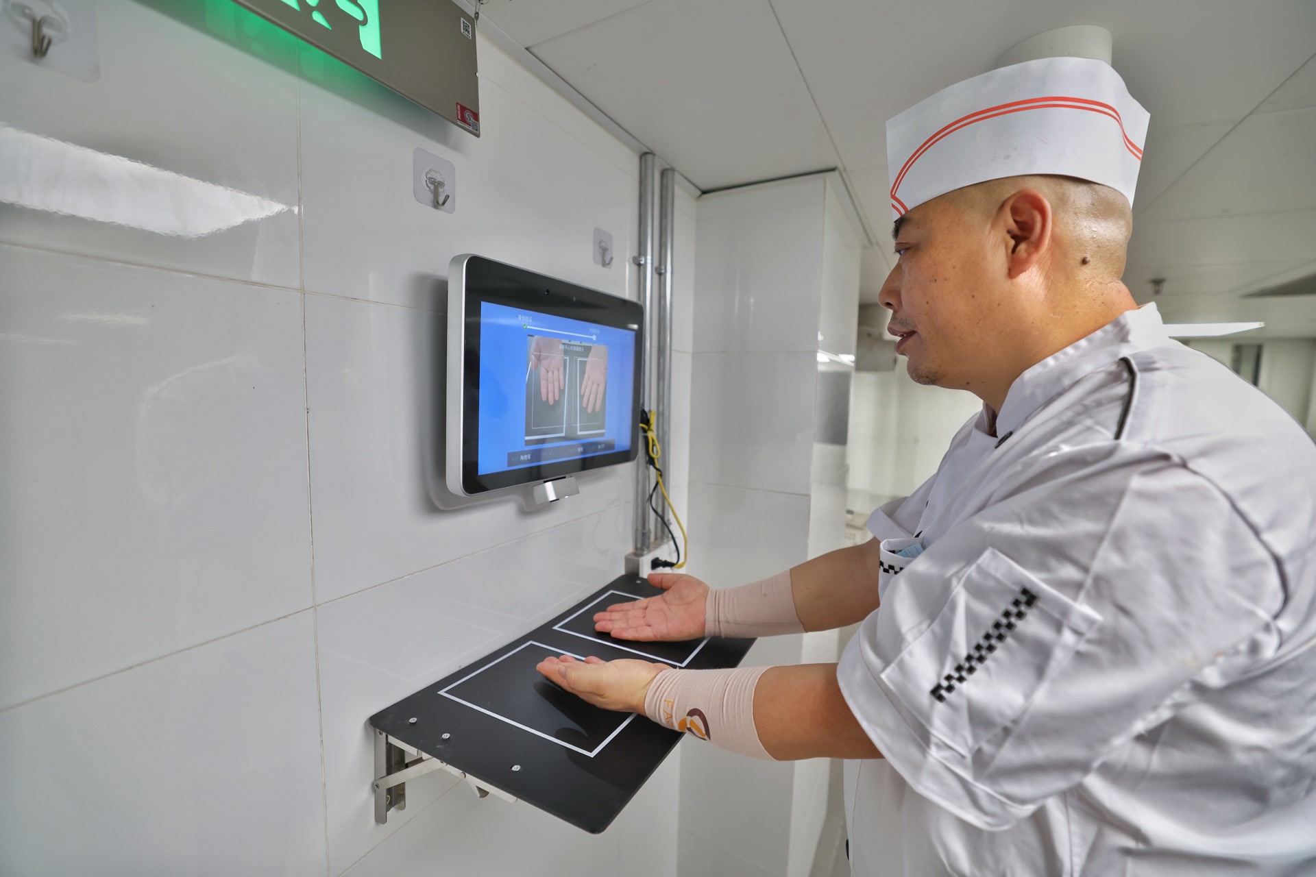 新学期,十一实验中学的食堂里新添了一块智能互动屏,师生们可以点击屏幕上的“智慧食堂驾驶舱”,实时调取智慧食堂管理系统,查看采买、验收、人员晨检、食材保存、菜品制作、留样等13个关键场景的操作流程,实现食品安全各环节的全程监管。