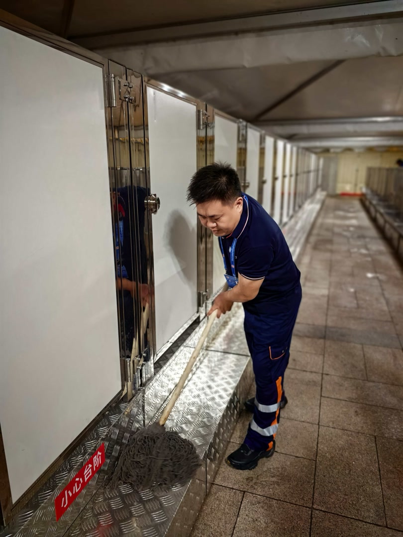 活动当日,广场欢声如潮,厕所保障团队全程“在线”:专业保洁员驻守每个点位,人走即清、满桶即运,始终维持洁净无味;维修小组背负工具包持续巡检,践行“3分钟响应、10分钟解决”的承诺;如厕高峰时,70余名引导员化身“流动指挥官”,实时调节男女指示牌,确保厕位平衡,实现有序如厕。