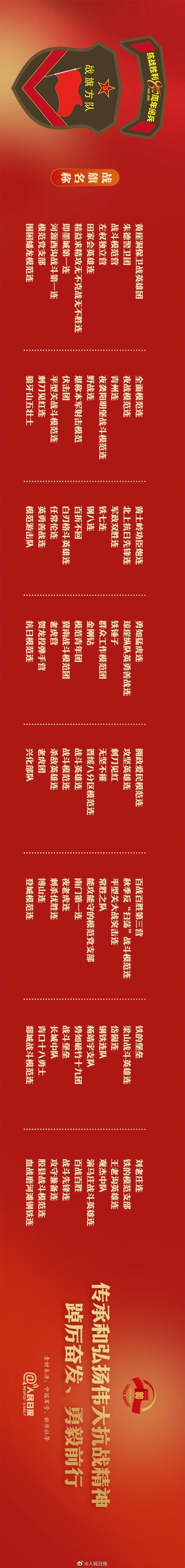 铁流滚滚,战旗猎猎。80面抗战英模部队荣誉旗帜组成的战旗方队,承载着历史荣光,接受祖国和人民检阅。再次走近这些英雄的旗帜、胜利的旗帜、不朽的旗帜,人民军队,勇往直前!