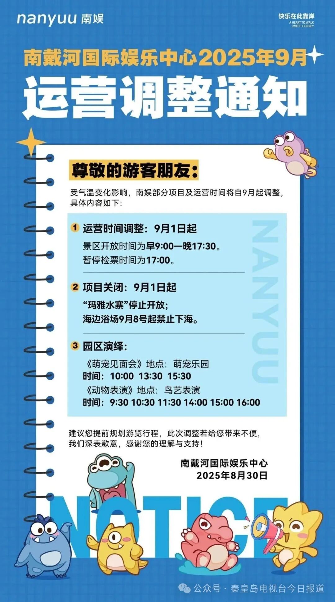 建议您提前规划游玩行程,此次调整给您造成的不便,我们深感歉意。感谢您始终如一的理解与支持,期待用更贴心的安排为您的旅程增添美好体验!