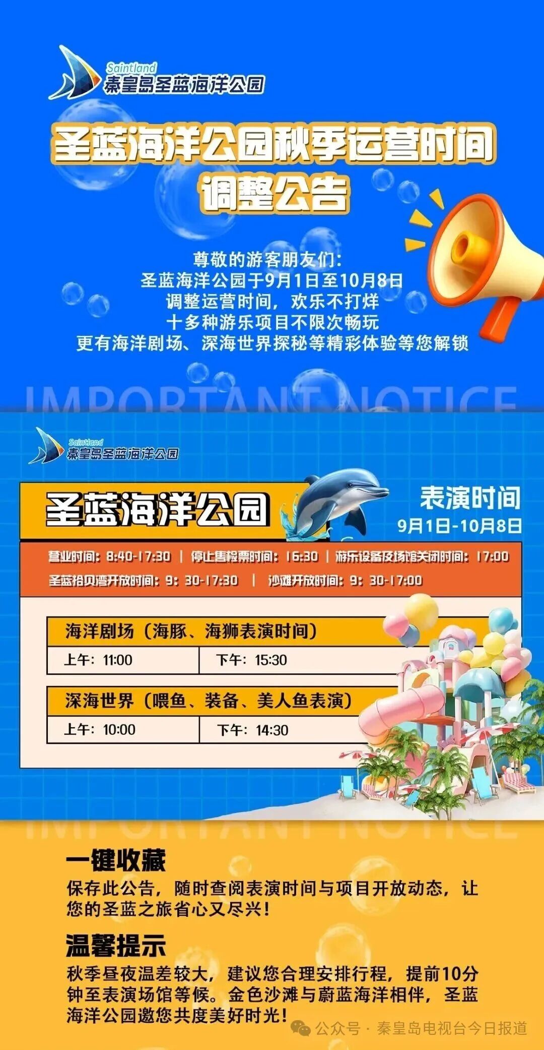 圣蓝海洋公园运营时间调整公告