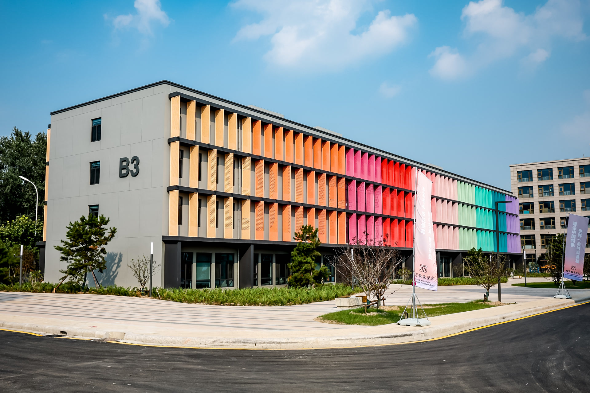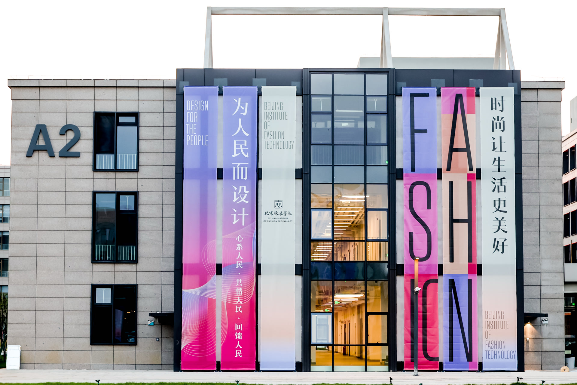 通州校区的建设凝聚了北服全校师生的智慧与心血,学校组建了由设计学学科带头人、骨干教师与优秀学生代表构成的跨学科团队,深度参与新校区设计、建设工作。大到校园功能分区、楼宇改造方案,小到景观小品设计,都经过广泛征集意见与民主决策,完善校园景观风貌设计,将北服独特的“时尚范”融入每一处空间。