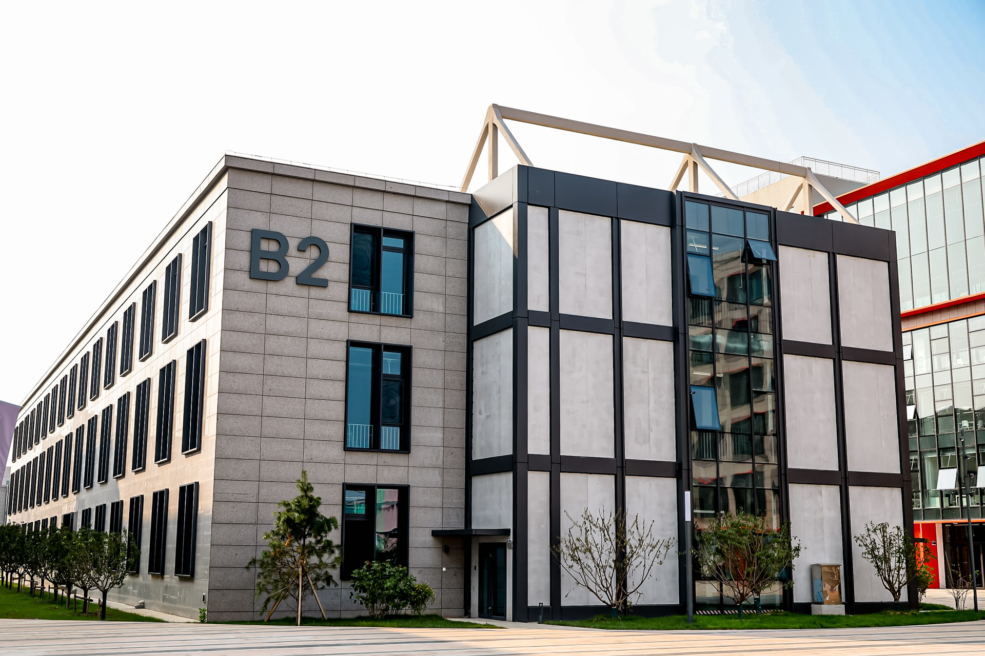 相关负责人介绍,通州校区一期的建设,还是一场“城市更新”的创新实践,其前身是通州区张家湾设计小镇的工业园区。学校以“织・造”为核心设计理念,通过“城市织补”手法,对19万平方米工业用地进行系统性改造,通过景观设计软化校园边界,以“针线”“纽扣”为设计意象串联功能区,搭配错落种植的樱花树景观,让教育功能与工业遗存有机融合,实现校园与城市肌理无缝衔接,凸显了北服特色。