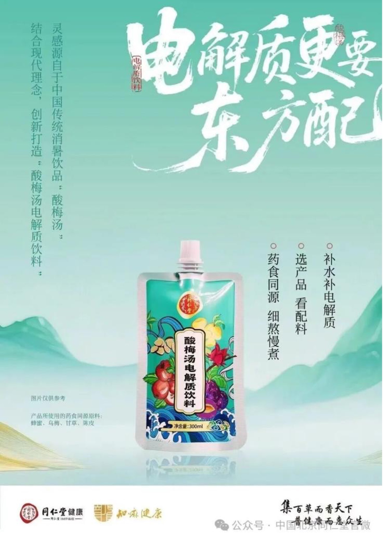这款饮品既守正又创新:一方面严守同仁堂品质标准,精选乌梅、山楂、陈皮、甘草、蜂蜜等原料,做到无蔗糖、无色素、无香精,口感清爽醇厚,尽显天然健康属性;另一方面首创“药食同源组方+安全电解质”结合模式,遵循“生理匹配、安全优先、功能协同”三大原则,优选柠檬酸钠、氯化钾、维生素C等成分,精准契合阅兵场景下人体对能量与电解质的补充需求。