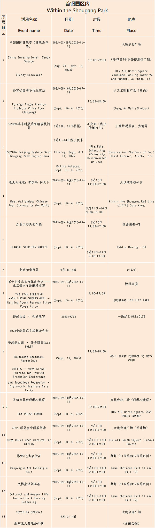 2025年中国国际服务贸易交易会(以下简称“服贸会”)将于9月10日—14日在北京首钢园举办。为推动服贸会与消费融合联动,按照商务部“购在中国”活动安排,结合北京市“京彩四季”消费活动主题,在服贸会期间配套推出20余场精品消费活动,充分满足来京游客和在京市民的多元消费需求,营造活跃的消费氛围。