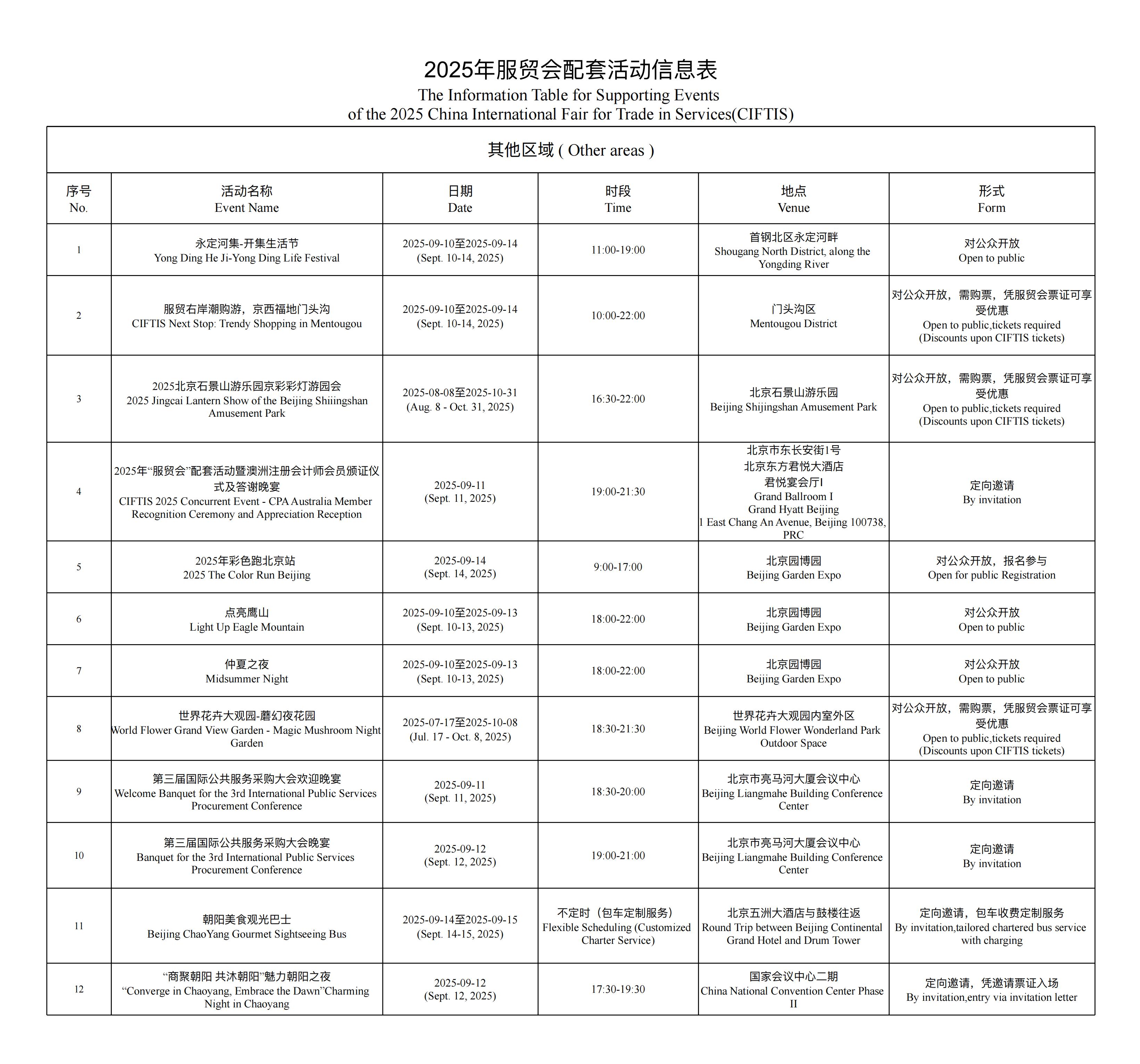 2025年服贸会期间,将举办文艺演出、消费市集、体育赛事等多项配套活动,聚焦文商旅体深度融合,打造多元化消费新场景。