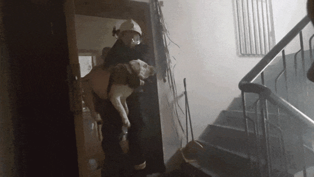 随后在楼上救出一只狗狗